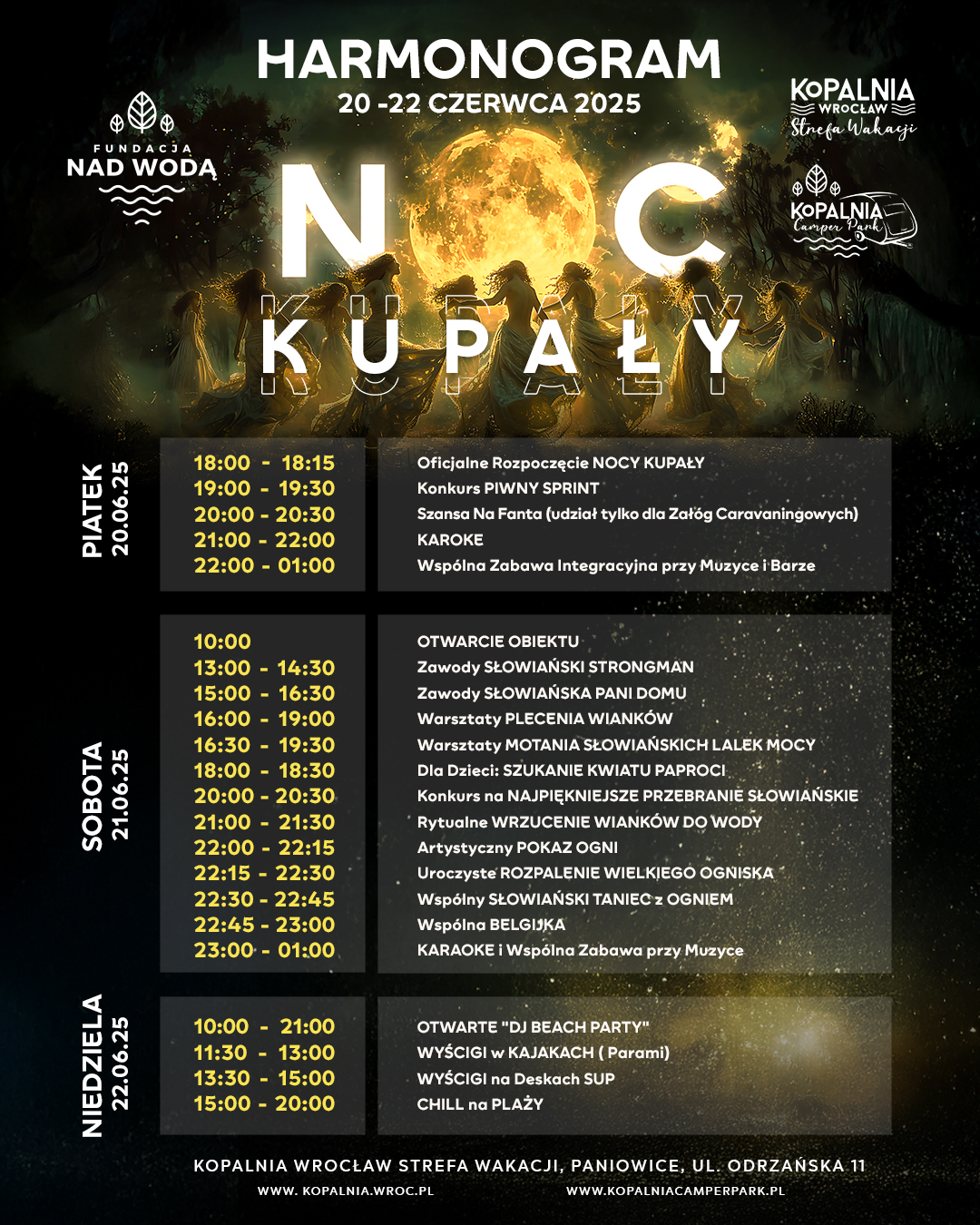 W dniach 20–22 czerwca 2025 na malowniczo położonym Kopalnia Camper Park — w sercu Kopalni Wrocław – Strefy Wakacji pod Wrocławiem — odbędzie się wielkie świętowanie Nocy Kupały 2025.